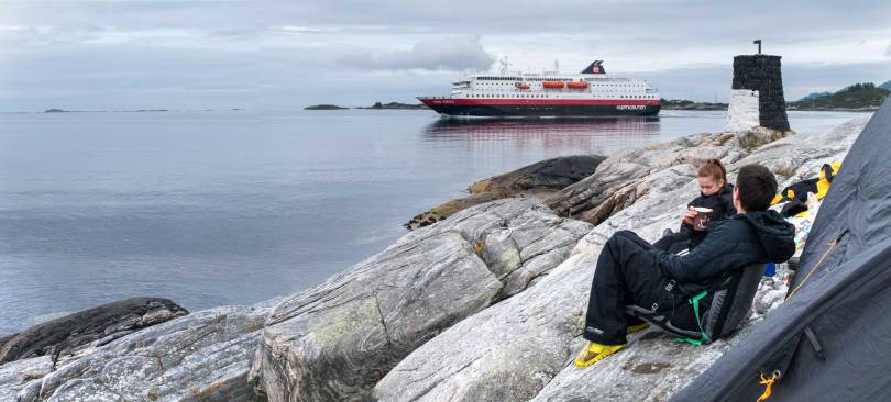 Morgenkaffe. Hurtigruten på vei sørover.