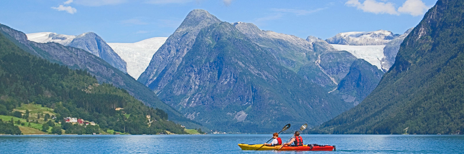 Fjærlandsfjorden med Bøyabreen og Flatebreen. Fjord and glaciers.