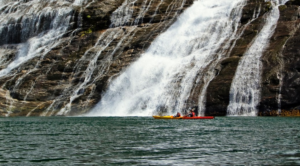 Geirangerfjorden med fossefallene “De sju søstre” og “Friaren” samt høydegården Skageflå er en del av et verdensarv-område. Området gir gode muligheter for padling, men det er litt krevende å finne gode teltplasser. Mange “strender” er rasvifter og ikke egnet til å oppholde seg på (kart).