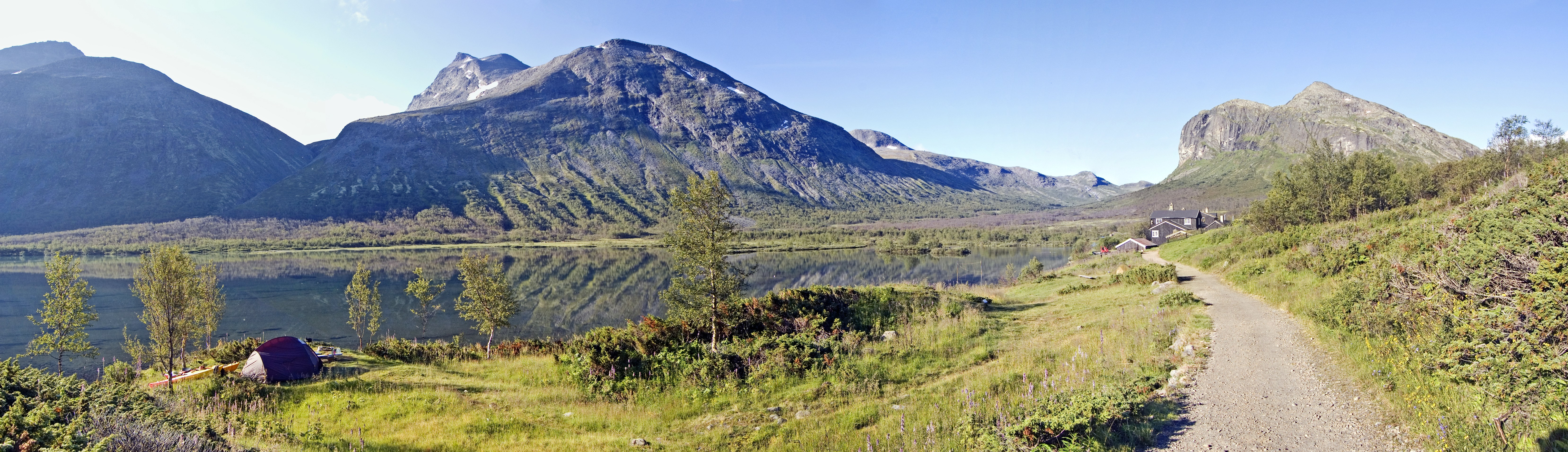 Teltplassene ved turisthytten. Svartdalspiggen i bakgrunnen