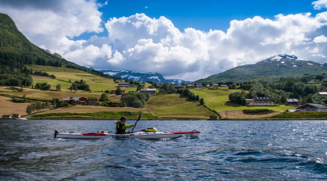The Jølstravatnet lake in Jølster in western Norway is surrounded by stunning mountains and scenic farmland. Circumnavigating the lake is a 68 kilometer padle. We started off from Skei in the northeast part, and paddled off clockwise round the lake. The area is the home and inspiration of the late Nikolai Astrup, who is a well known Norwegian painter. A visit to the area should include a stop for a guided tour of Astruptunet – the artists home, as well as a visit to the Eikaas gallery on the opposite shore.