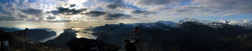 Hatlesetnipa / The view of the mountain ridge to the north shows the stair-step landscape formations