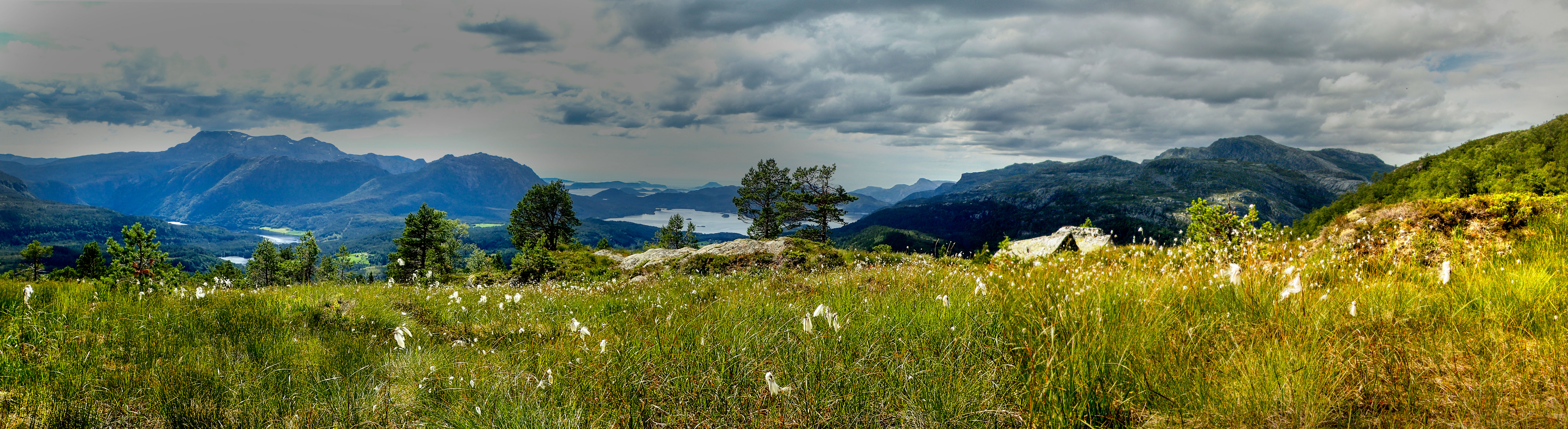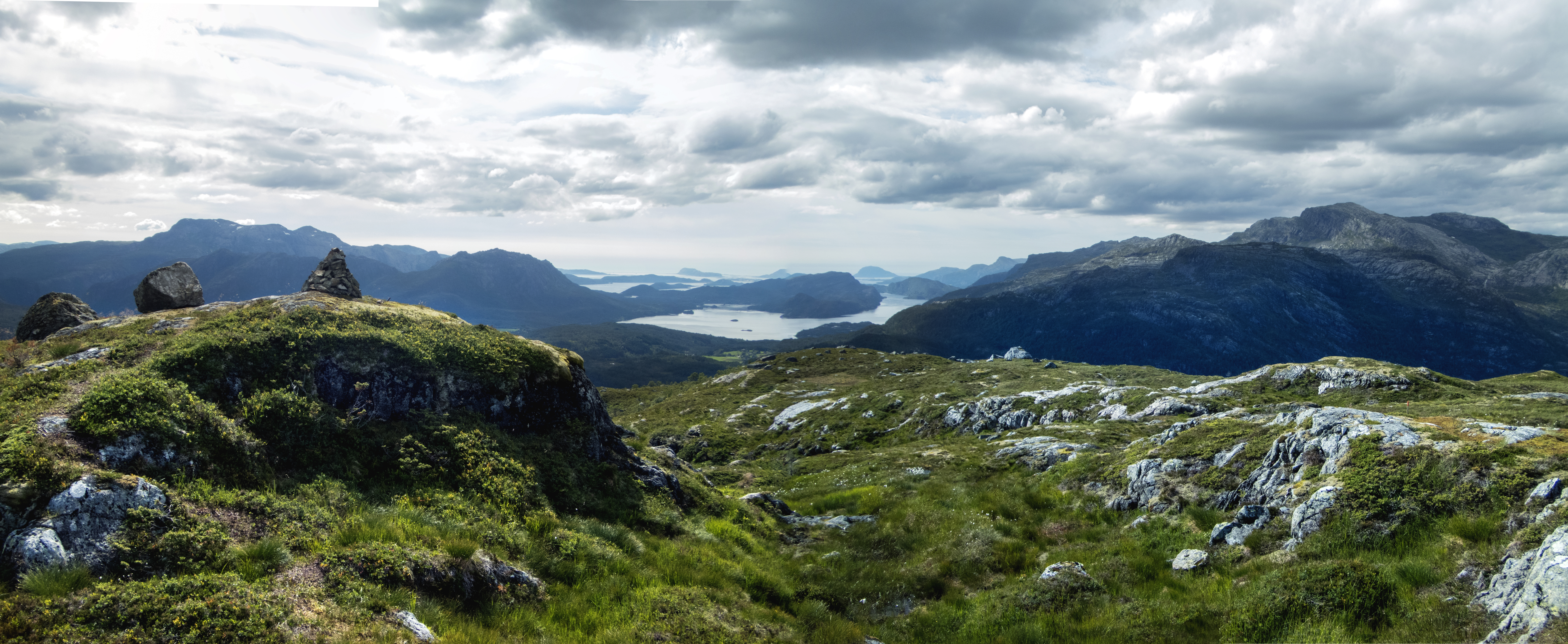 Turen fra Endestad og til Endestadnipa (763 m.o.h.) går gjennom variert terreng, og det er hele tiden usikten som er belønningen. Klikk på bildene for å åpne i panoramaene eget vindu – du kan zoome bildene opp til 6000 pixler bredde. Alle bildene på denne siden er tatt med som RAW-filer med kompaktkameraet Olympus TG-4 og behandlet i Photoshop.