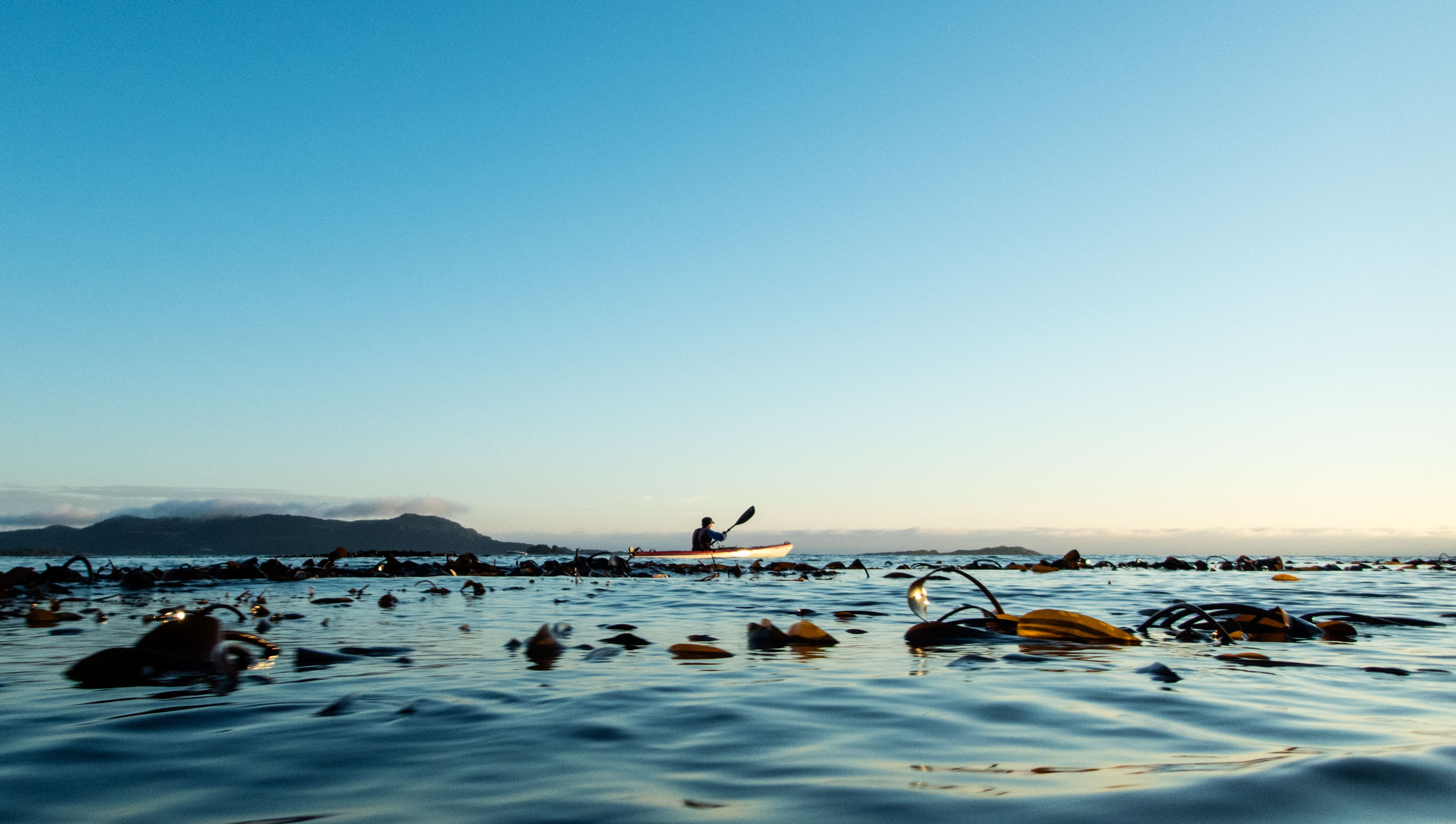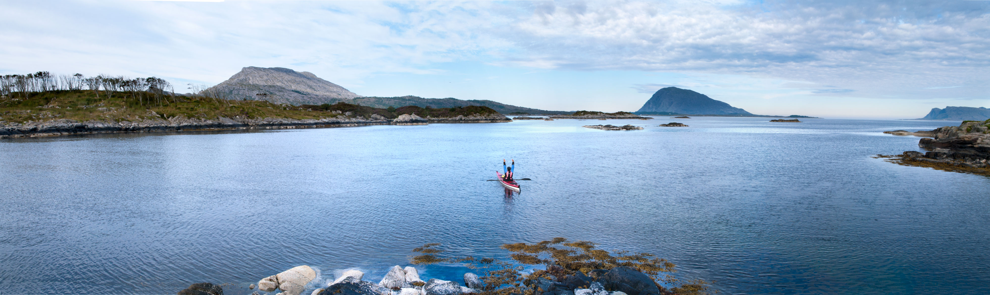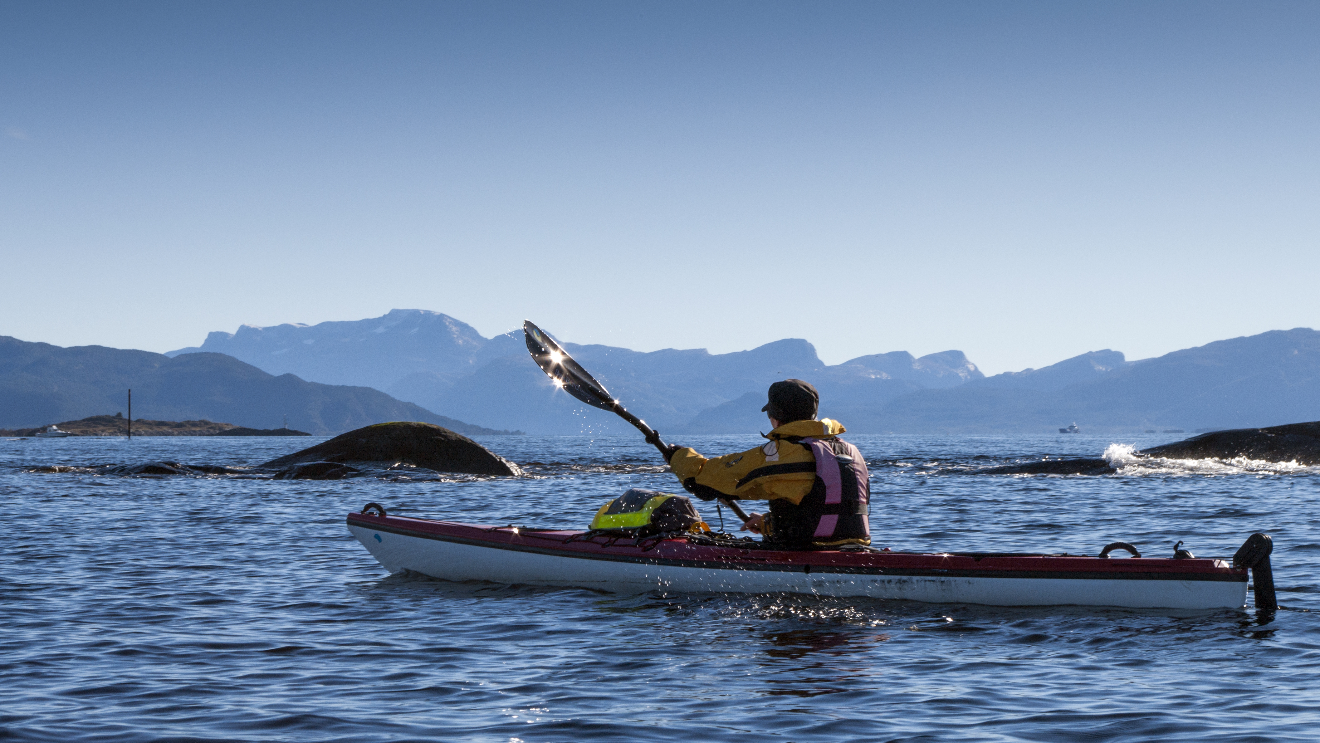 Skydekket hang lavt denne helgen, men tørrdrakter holder regnet ute …. Med vanntett kamera prøvde vi ut litt lavere kameravinkler som gir mer fokus på vannet og kajakken enn på det større landskapet.