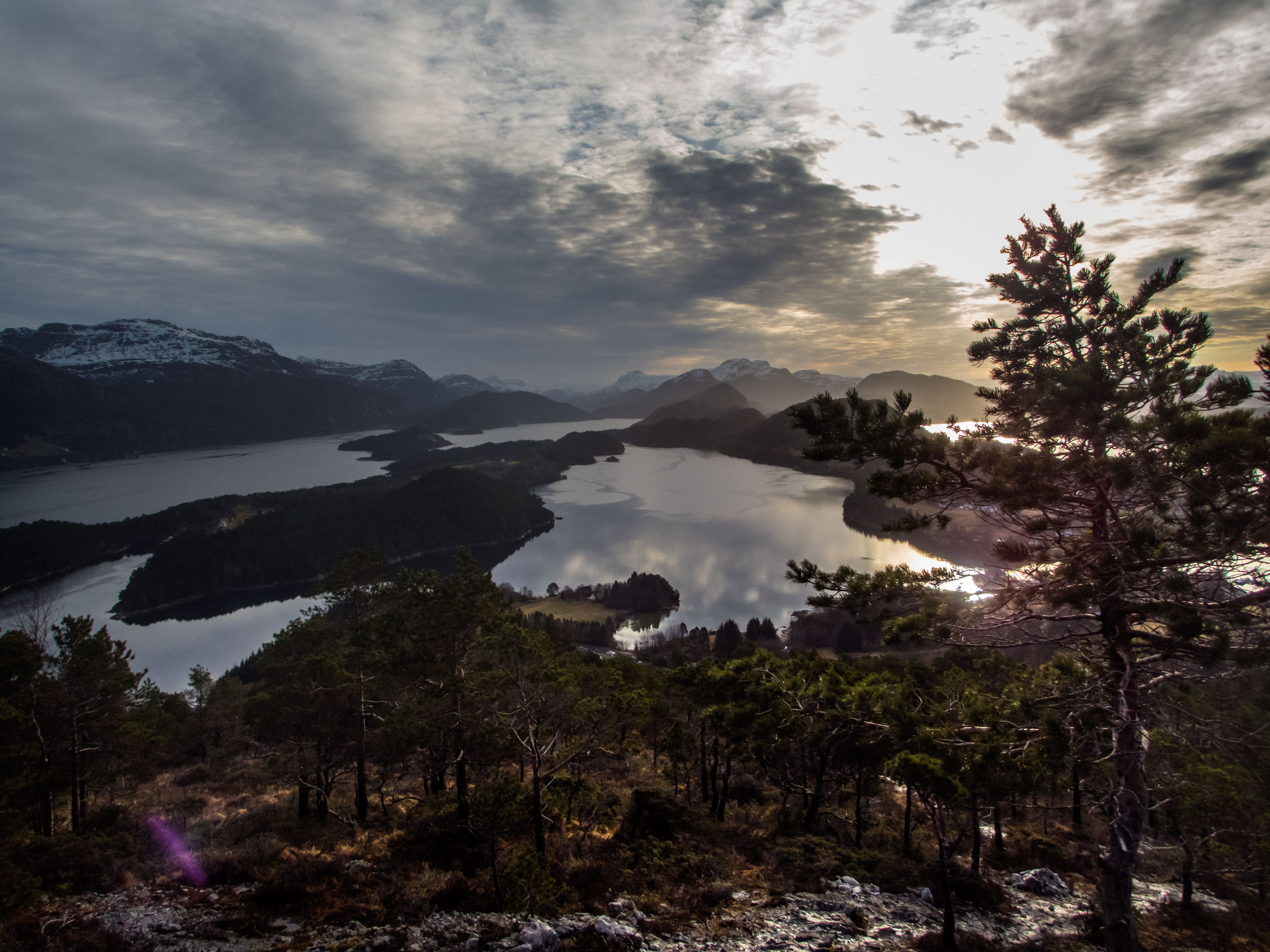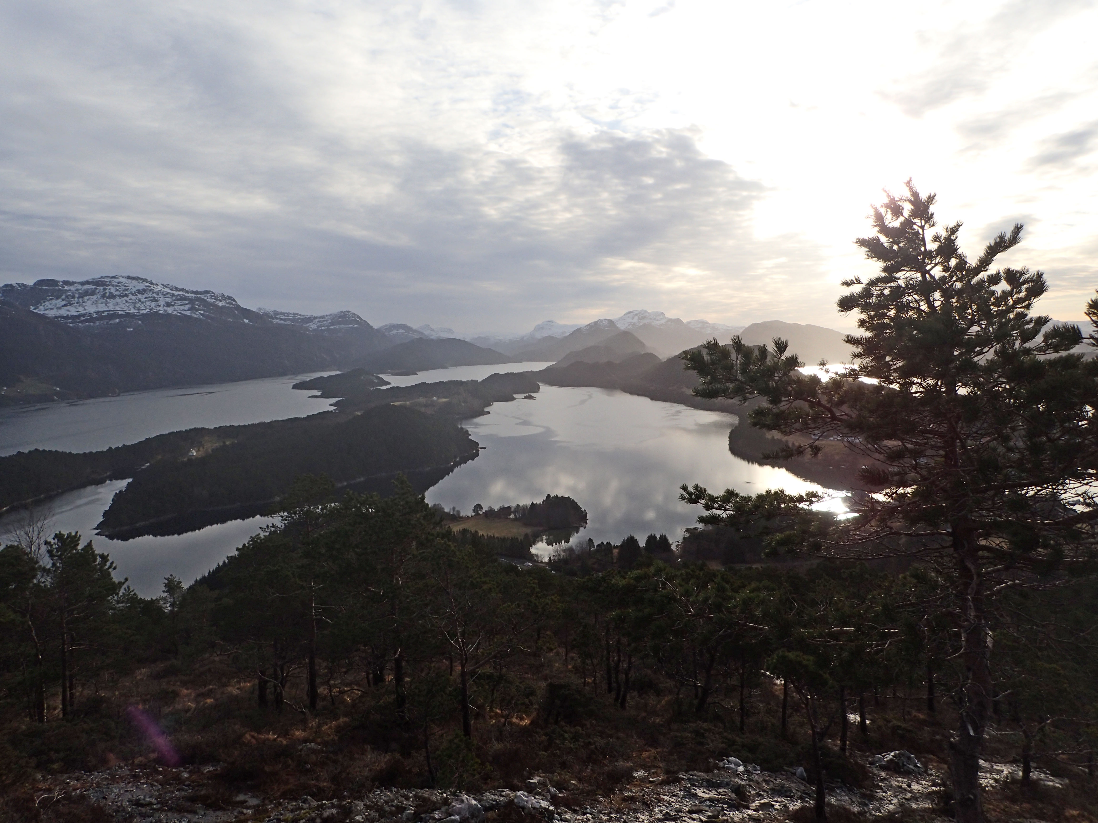 Med en tiltagende solgangsbris fra nord, fant vi ly på sørsiden av Færøya. Det store bildet av plassen ser slik ut.
