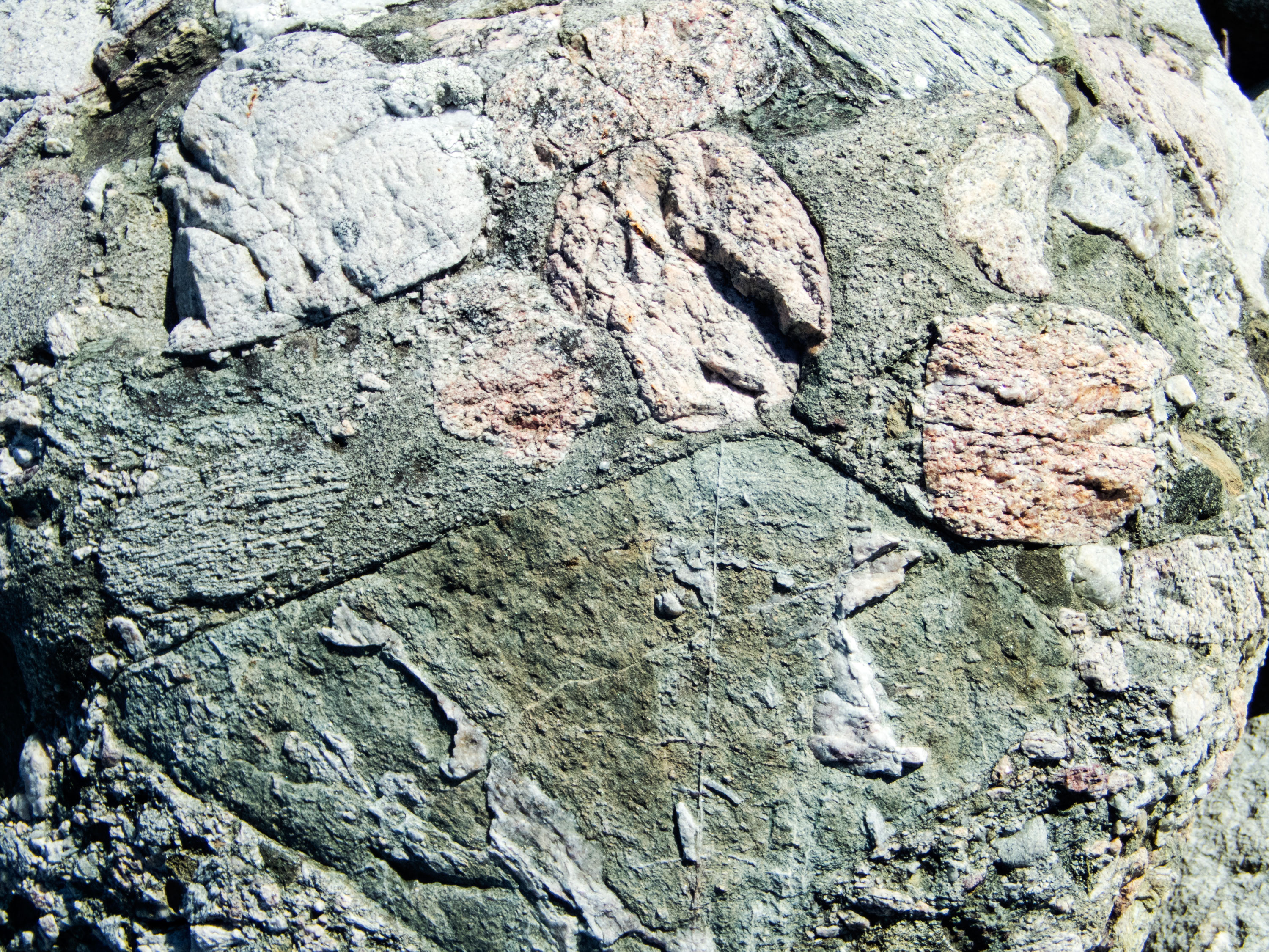 Når en kikker seg rundt på svabergene og steinrøyseene, ser en at er ulike typer bergarter og også innslag av flyttblokker med konglomerat og devonsk sandstein som kanskje er fraktet hit med isen under siste istid?